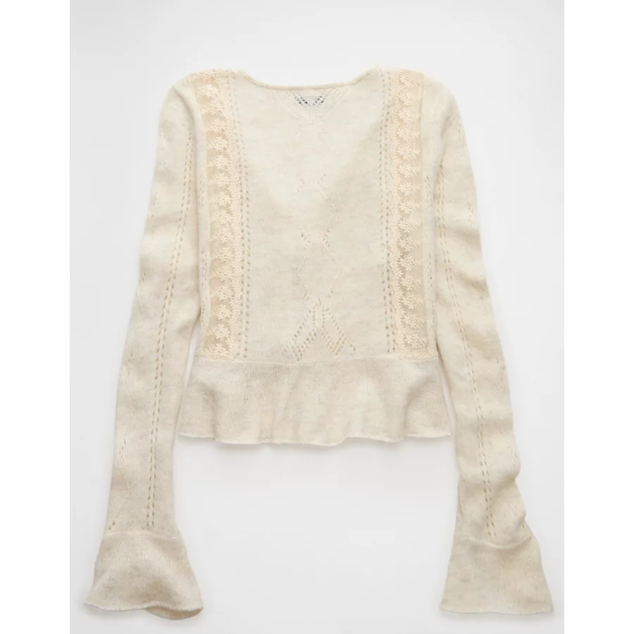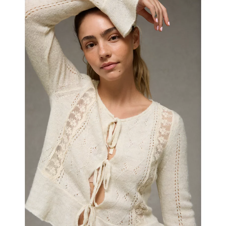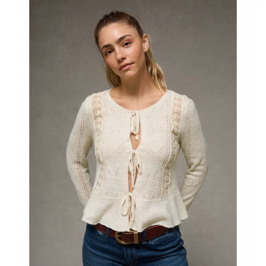 AE Lace Knit Tie-Front Cardigan - Heirloom