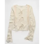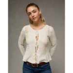 AE Lace Knit Tie-Front Cardigan – Oatmeal Heather