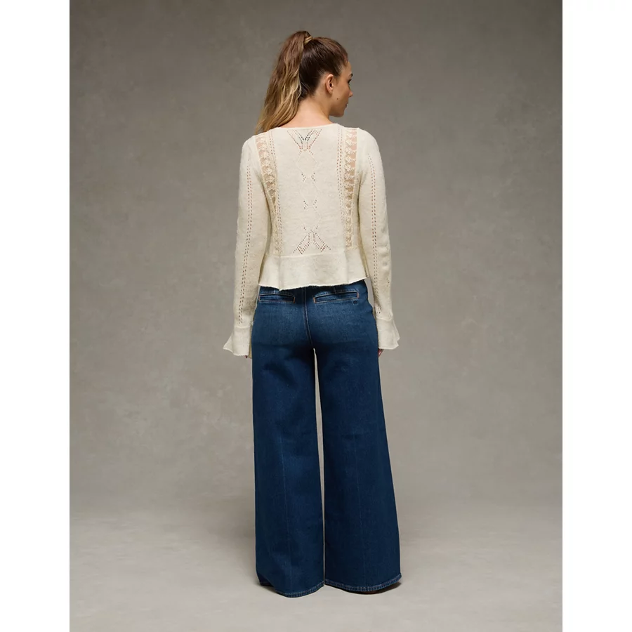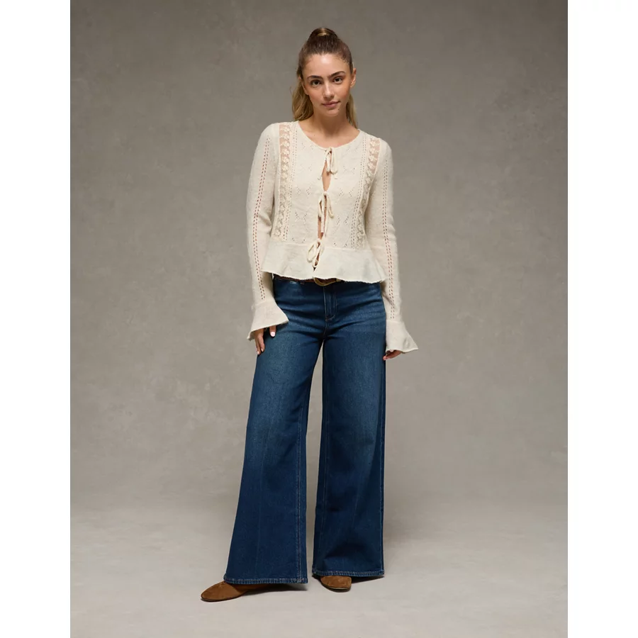 AE Lace Knit Tie-Front Cardigan - Blue