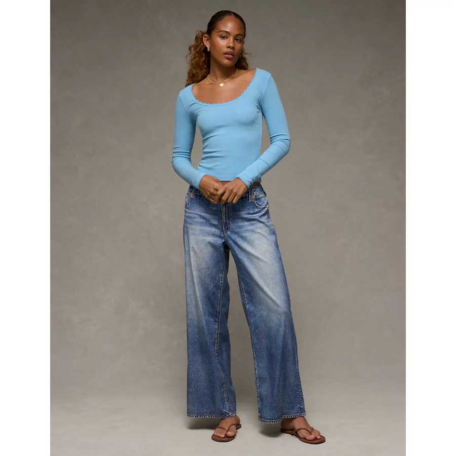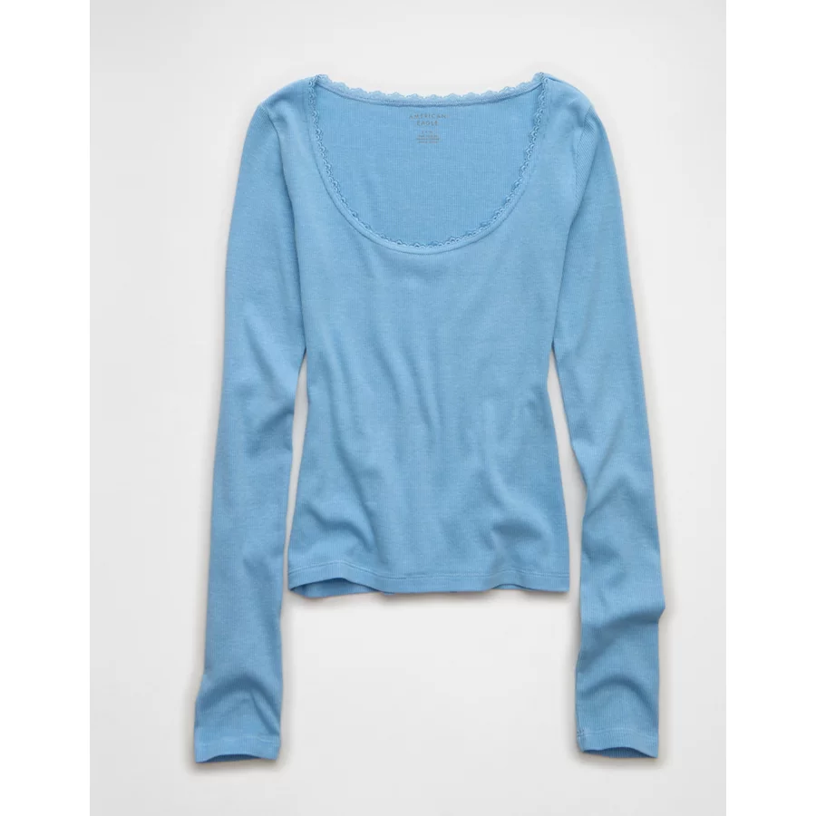 AE Lace-Trim Long Sleeve T-Shirt – Blue