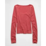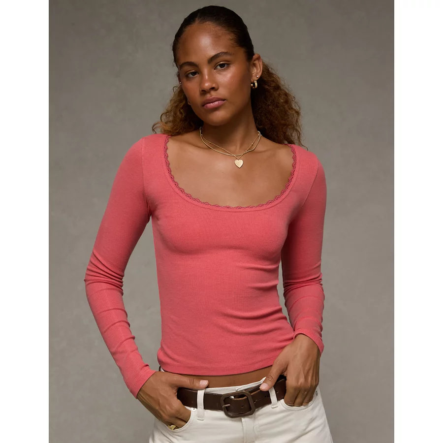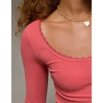AE Lace-Trim Long Sleeve T-Shirt – Rose