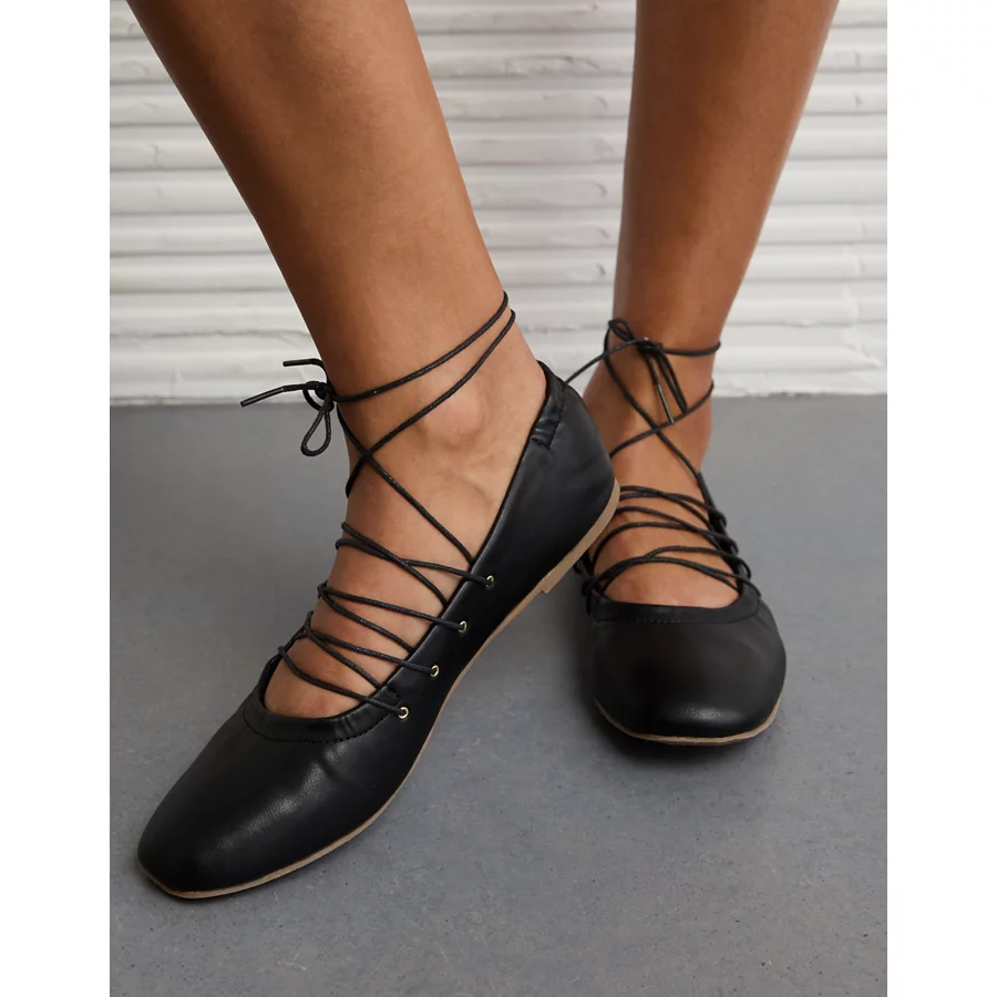 AE Lace-Up Denim Bustier Top - Medium Wash