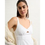 AE Linen-Blend Cut-Out Mini Dress – Ecru Denim