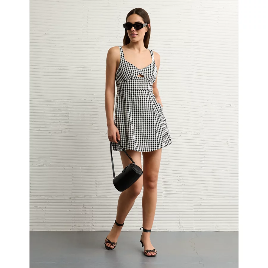 AE Linen-Blend Cut-Out Mini Dress - Black