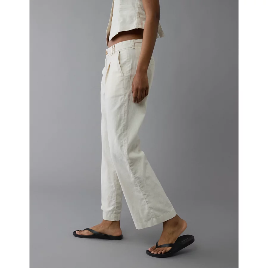 AE Linen-Blend Stovepipe Crop Trouser – Cream