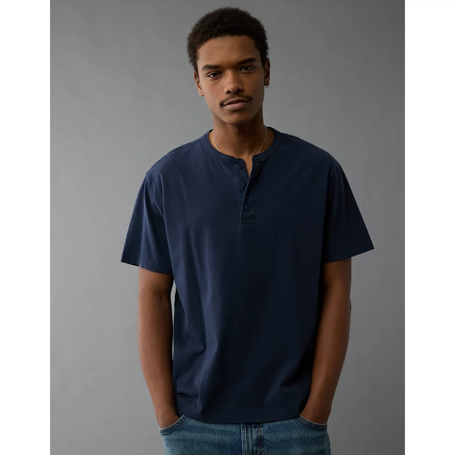 Super soft jersey with added stretchPolo collar with button placketAE 24/7 logoThis is Real Good: Made with the planet in