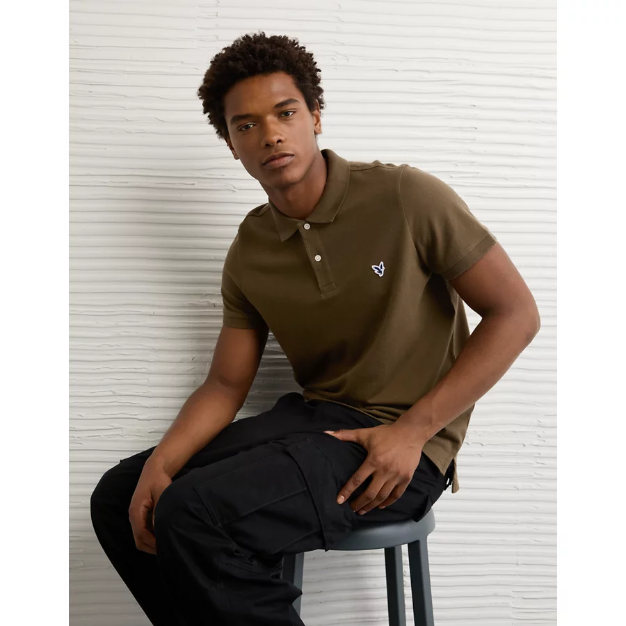 AE Lived-In Slim Fit Pique Polo Shirt – Green