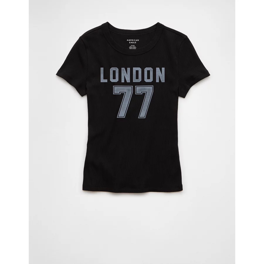 AE London 77 Graphic Hey Baby Tee – Black