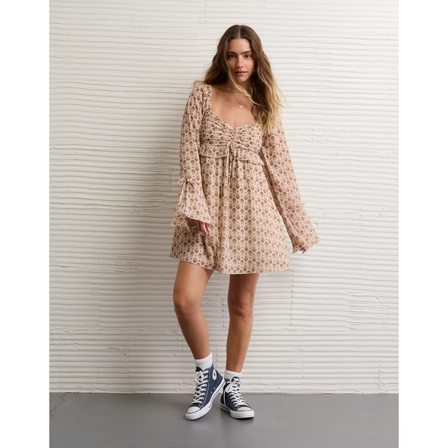 AE Long Sleeve Babydoll Mini Dress – Cream