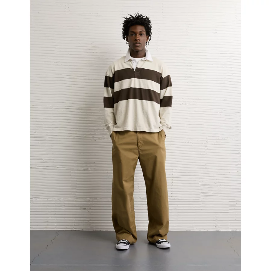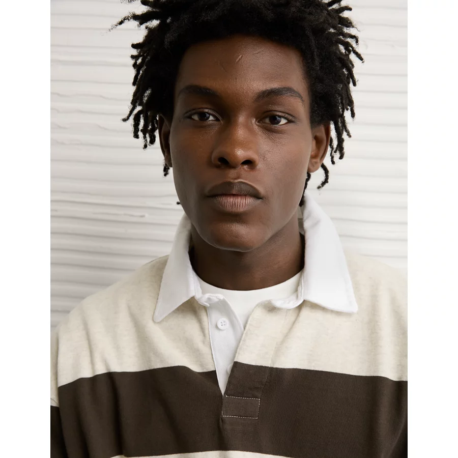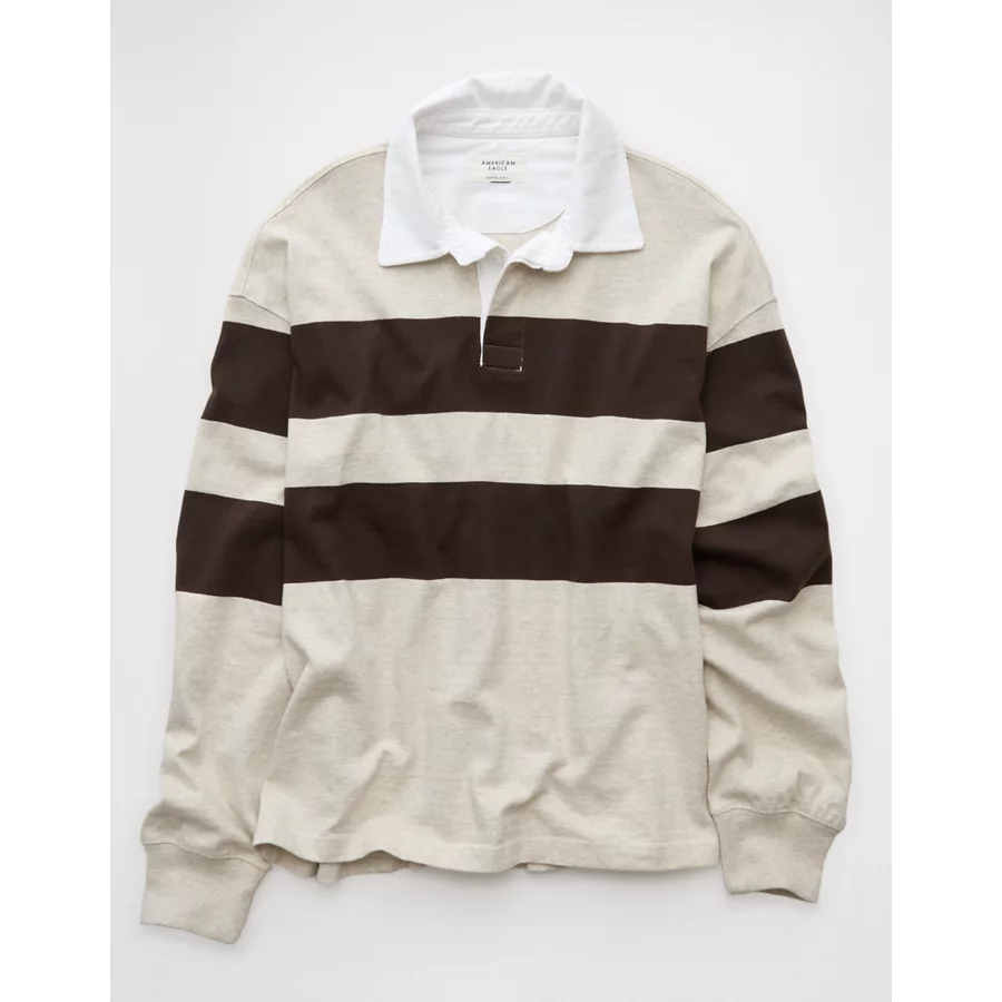 AE Long Sleeve Boxy Rugby Polo Shirt – Soft Oat