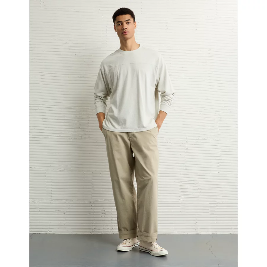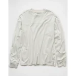 AE Long-Sleeve Boxy Sueded Jersey T-Shirt - Cream