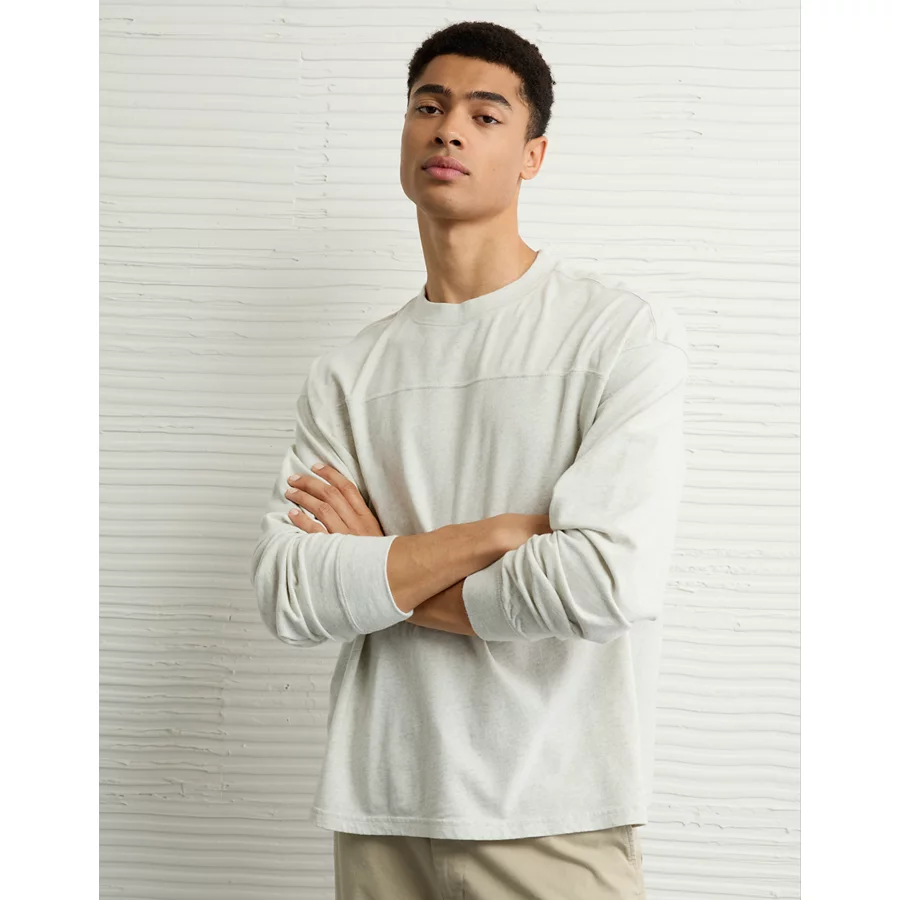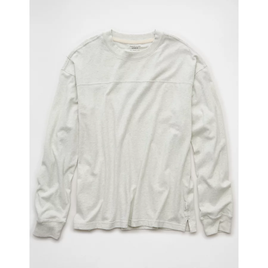 AE Long-Sleeve Boxy Sueded Jersey T-Shirt – Heather Gray