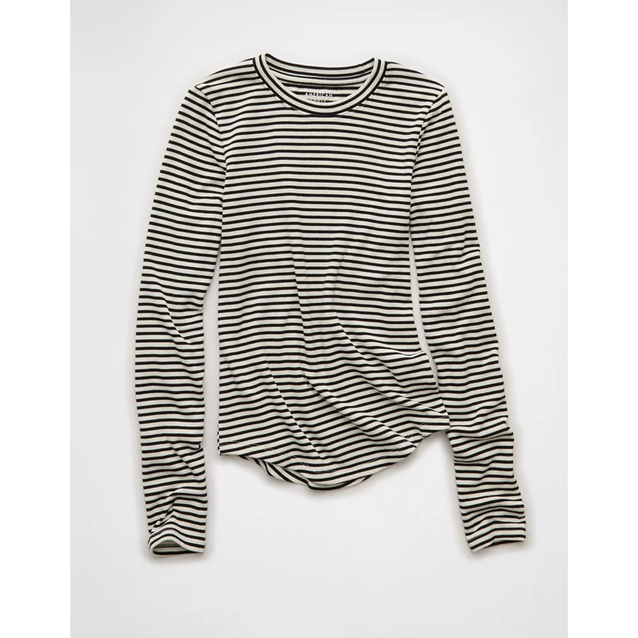 AE Long Sleeve Cozy Crew Neck T-Shirt – Black Stripe
