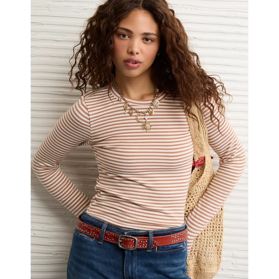 AE Long Sleeve Cozy Crew Neck T-Shirt – Brown