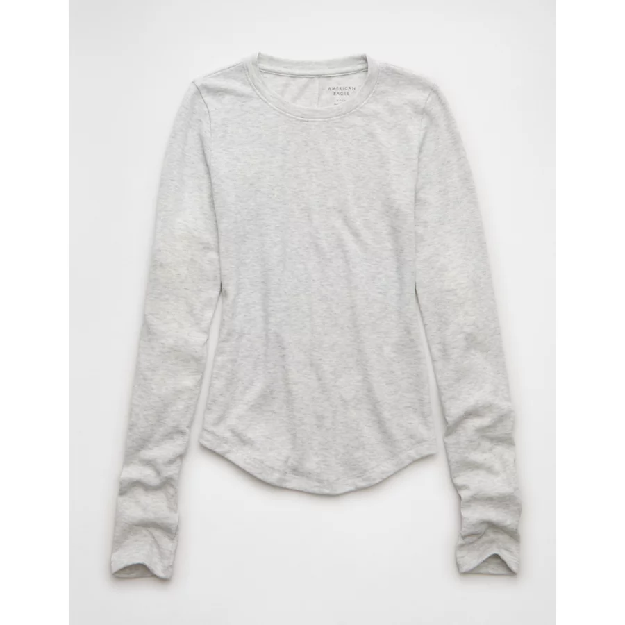 AE Long Sleeve Cozy Crew Neck T-Shirt – Light Heather Gray