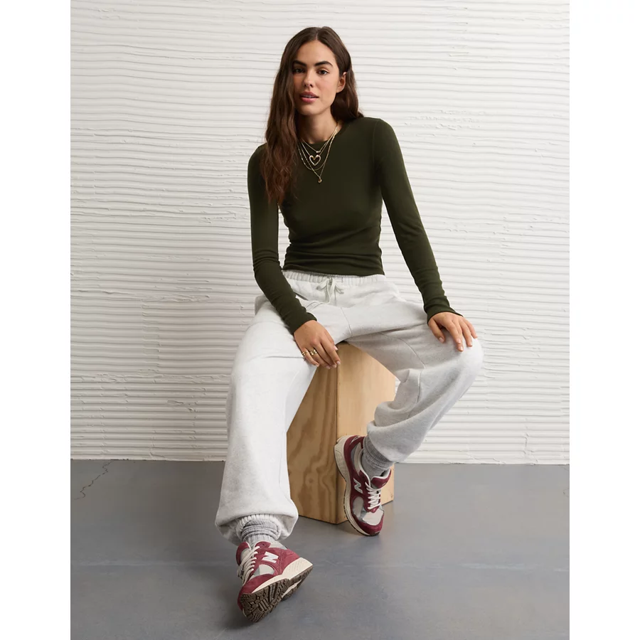AE Long Sleeve Cozy Crew Neck T-Shirt – Mist Green