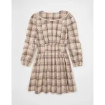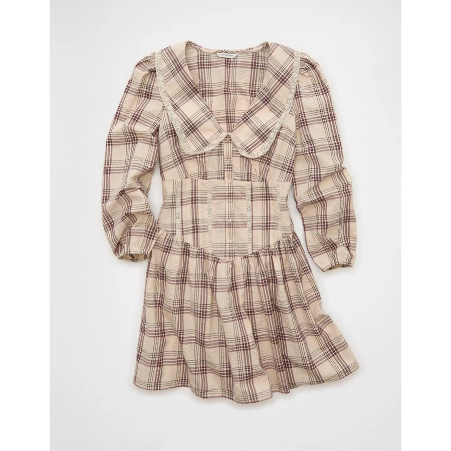 AE Long Sleeve Lace Collar Mini Dress – Brown