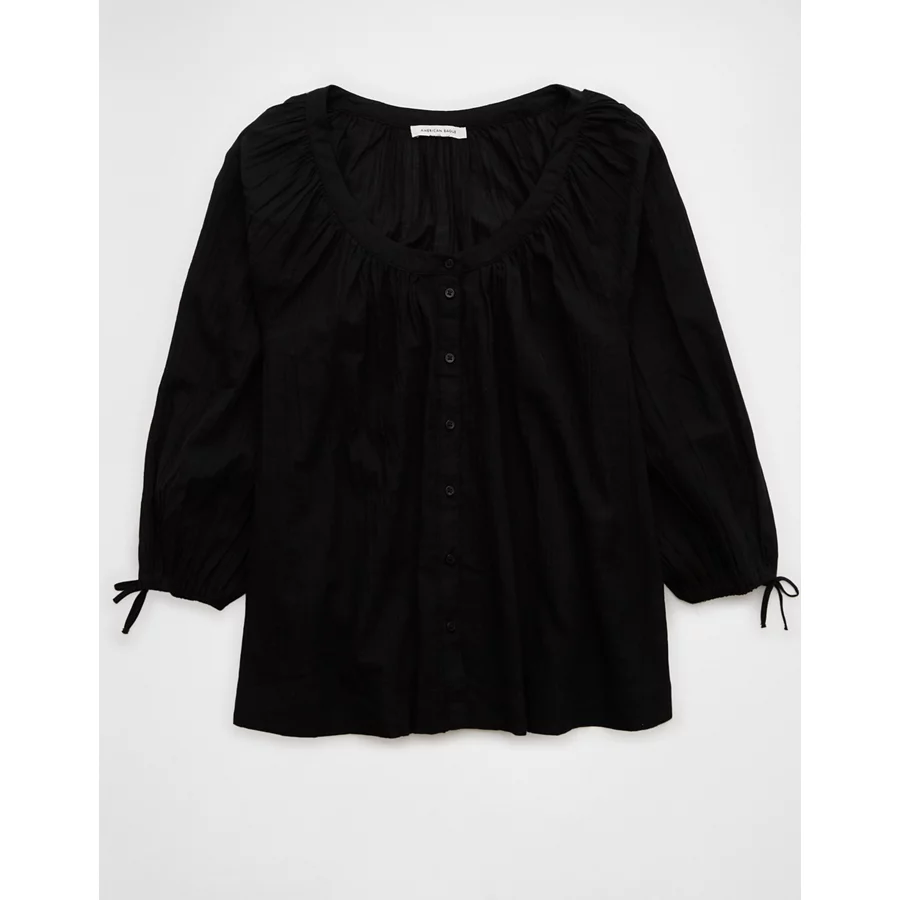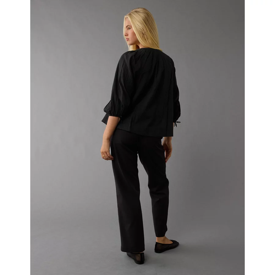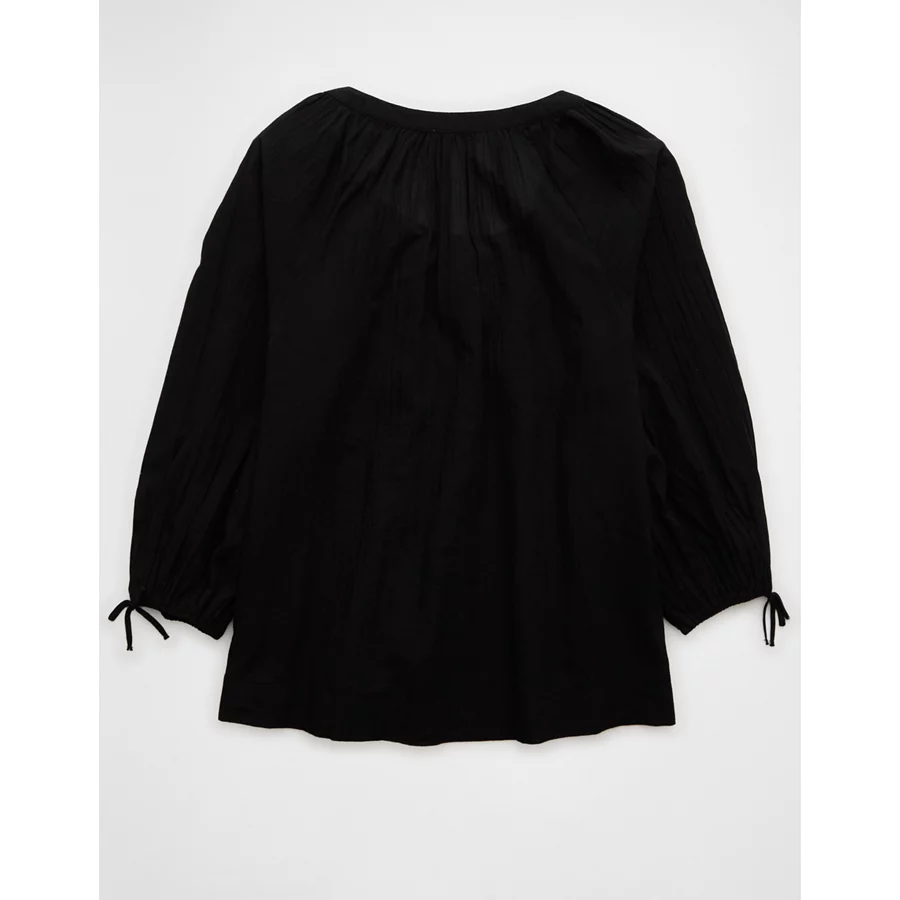 AE Long-Sleeve Open Neck Blouse – Black