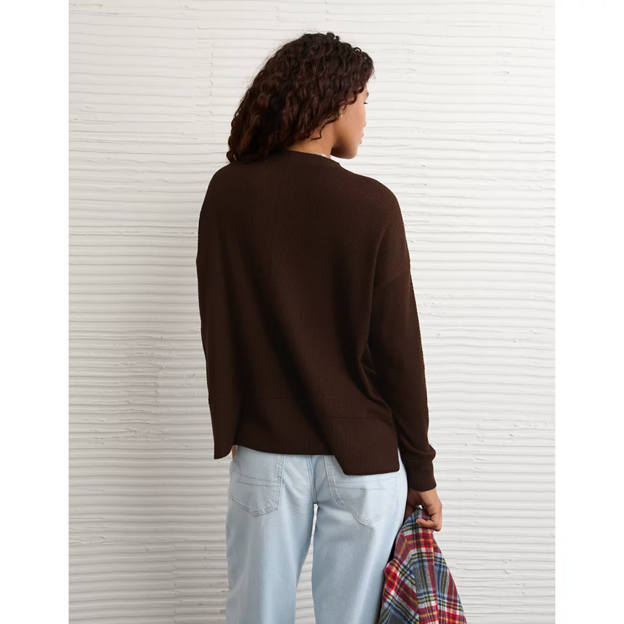AE Long Sleeve Plush Crew Neck Top – Chocolate