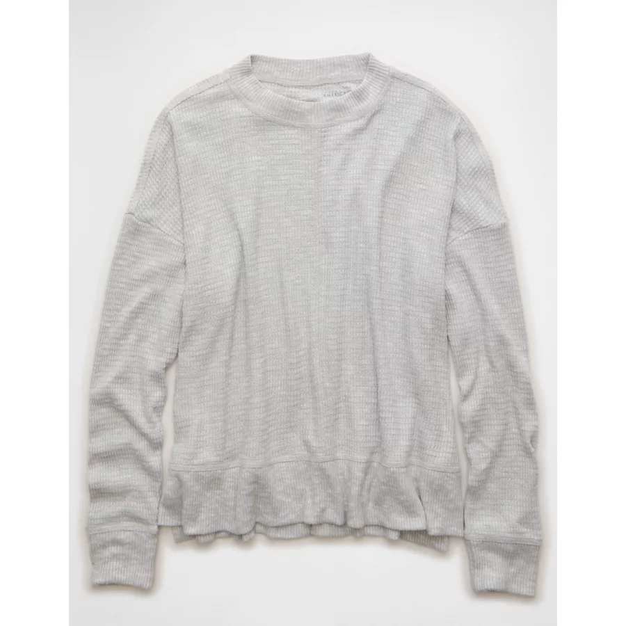 AE Long Sleeve Plush Crew Neck Top – Light Heather Gray