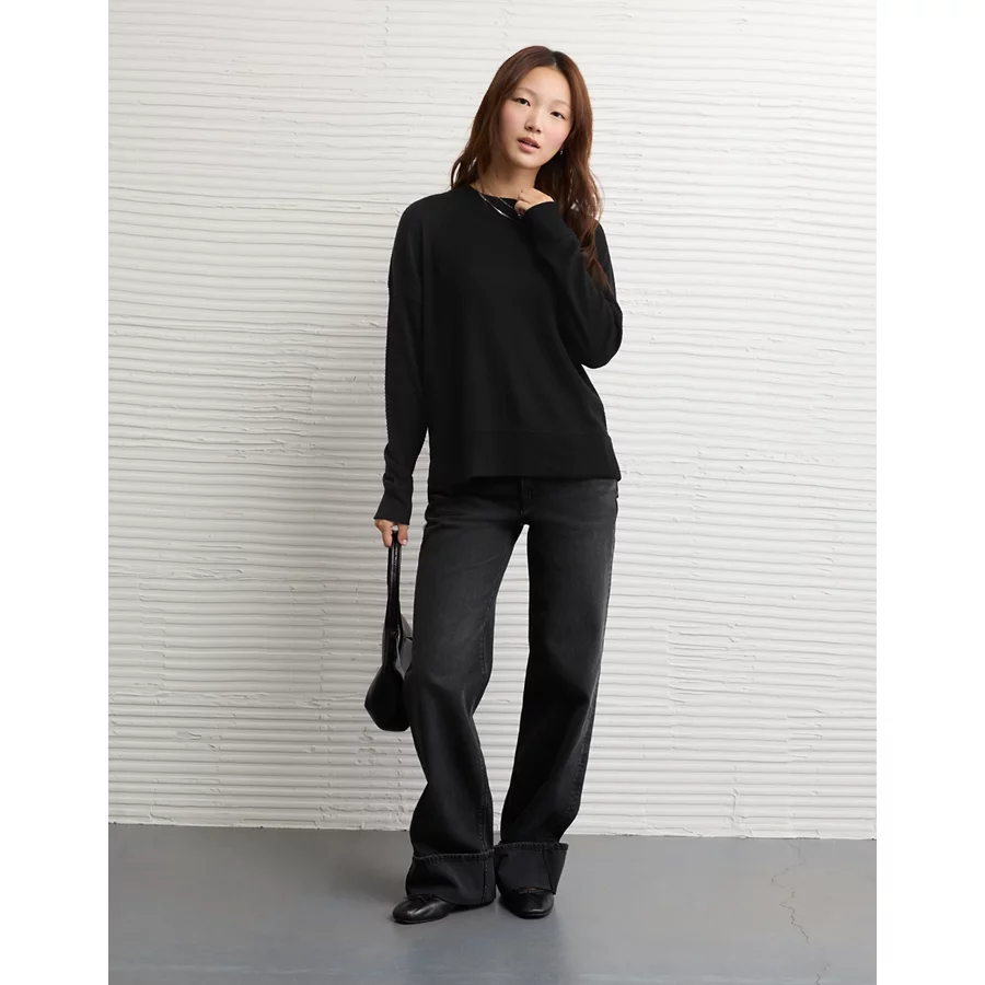 AE Long Sleeve Plush Crew Neck Top – True Black