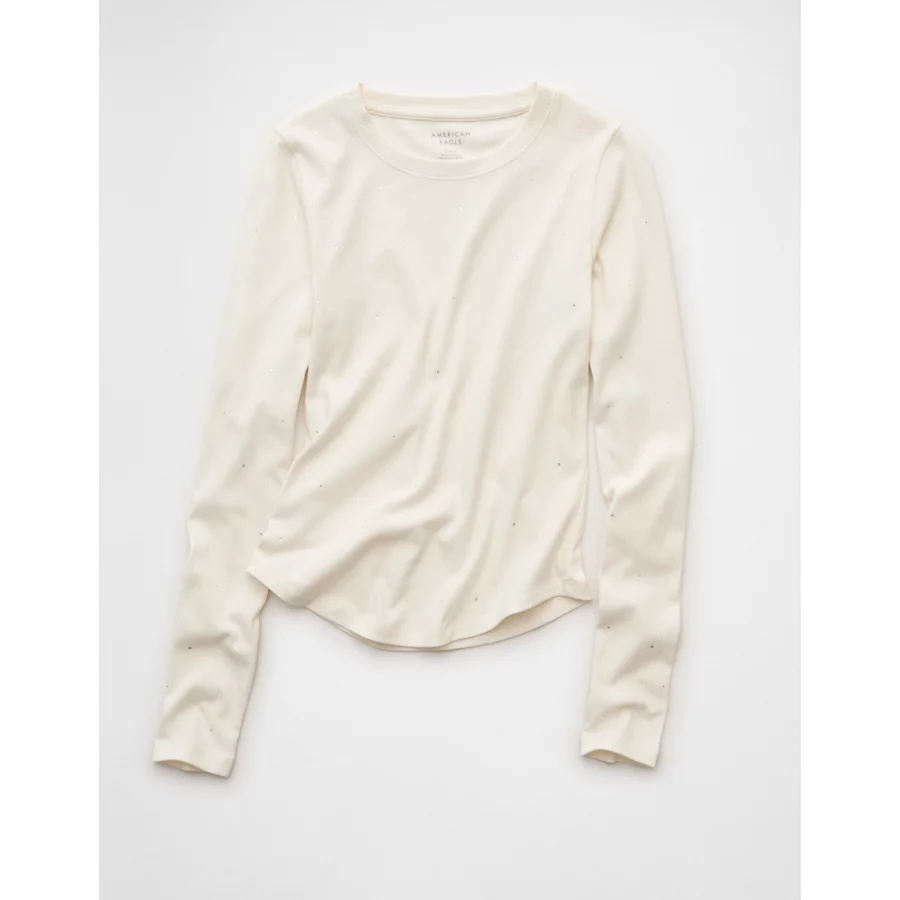 AE Long Sleeve Rhinestone T-Shirt – Chalk