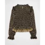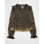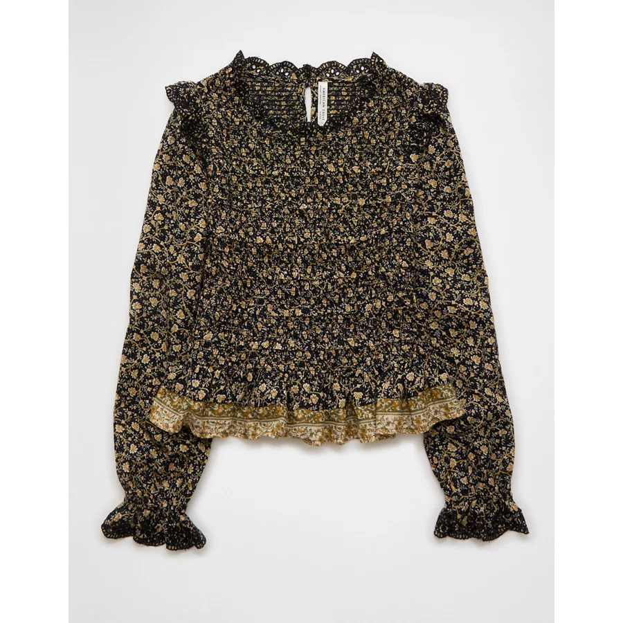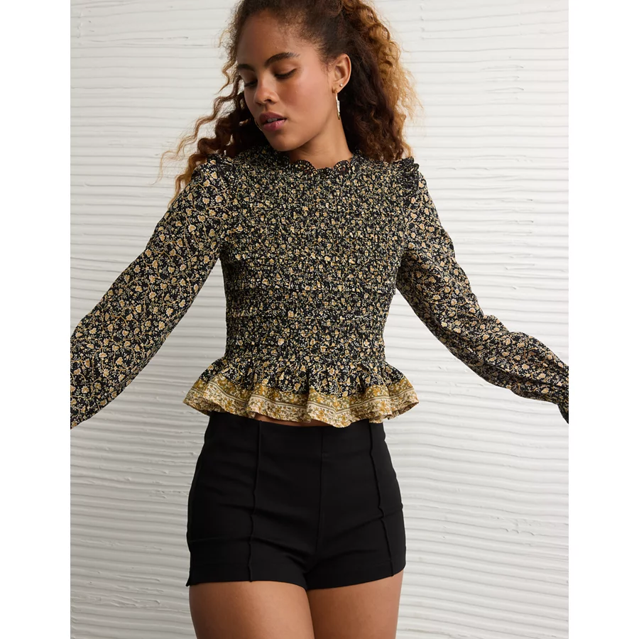 AE Long Sleeve Smocked Babydoll Blouse – Multi
