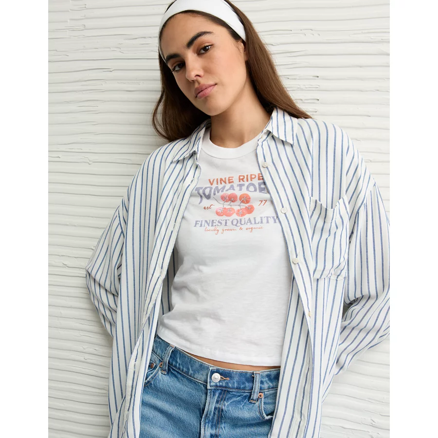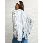 AE Long-Sleeve Tie Back Button-Up Shirt – Blue