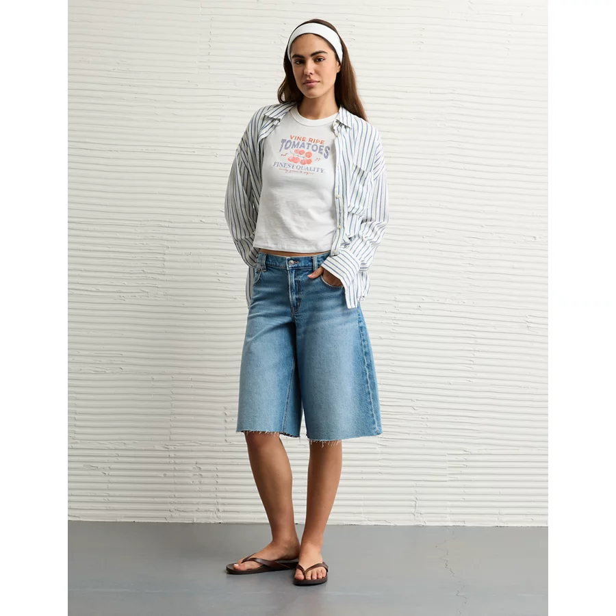 AE 8″ Dreamy Drape Stretch Low-Rise Baggy Jort – Medium Bright Indigo