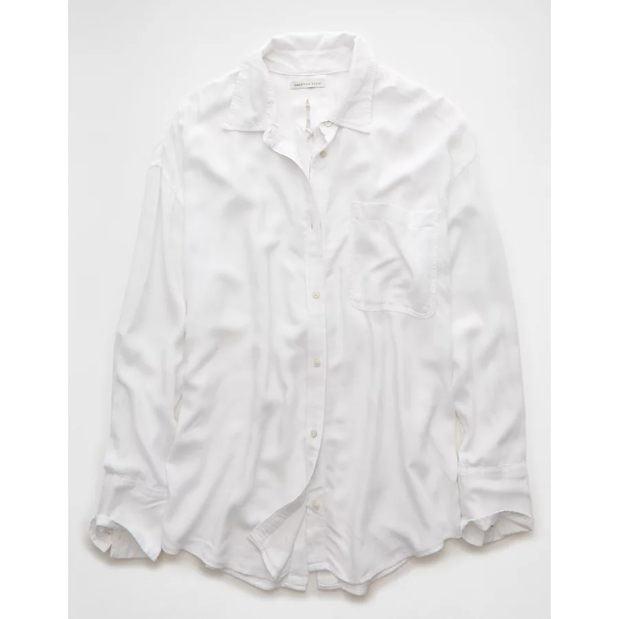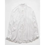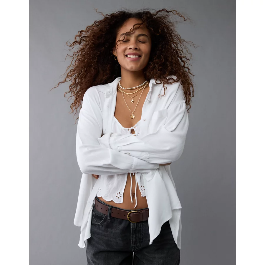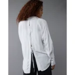 AE Long-Sleeve Tie Back Button-Up Shirt – White