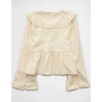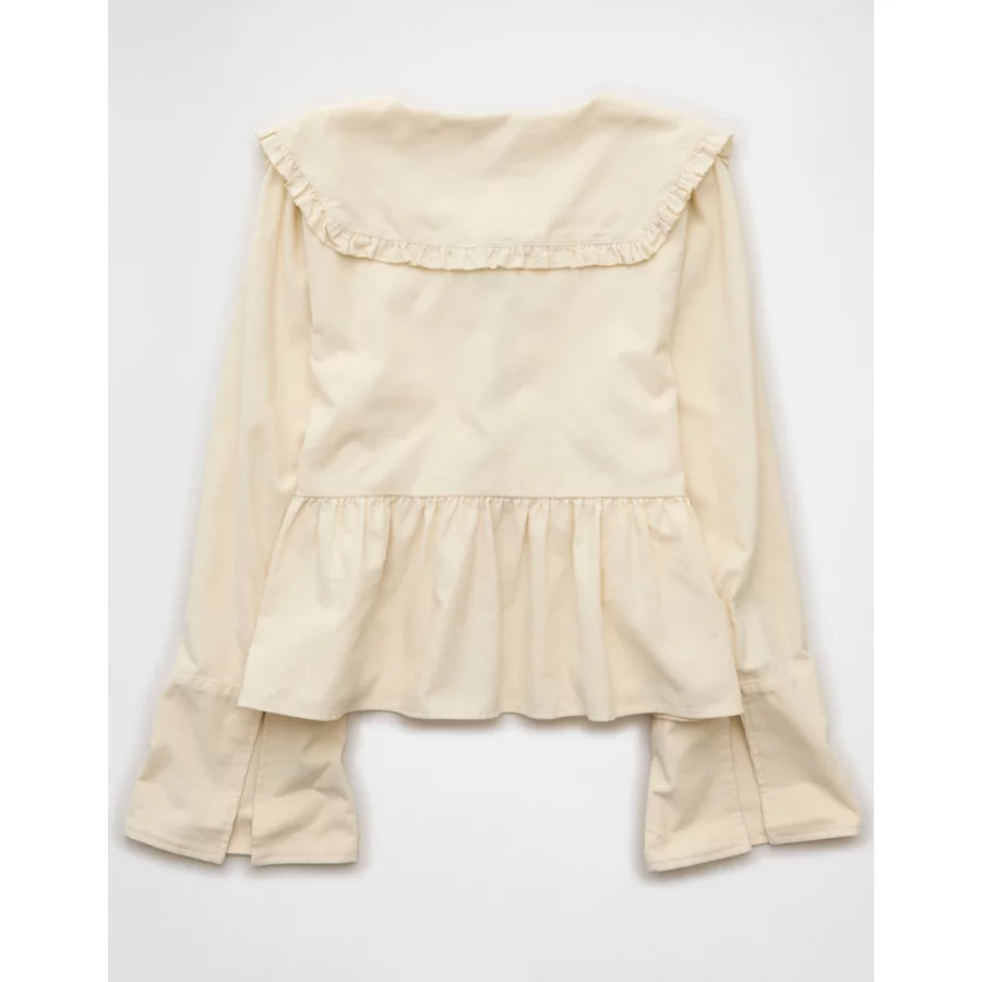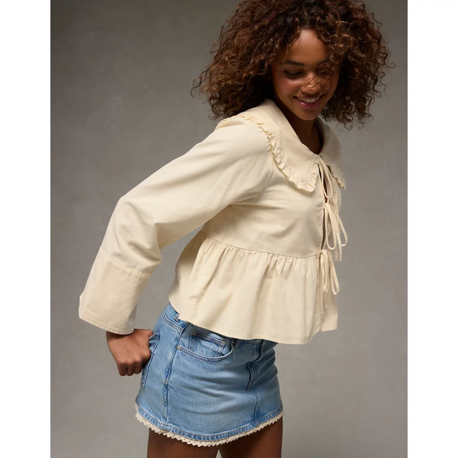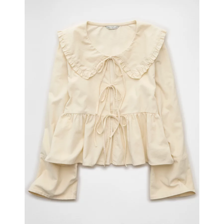 AE Long Sleeve Tie-Front Blouse – Cream
