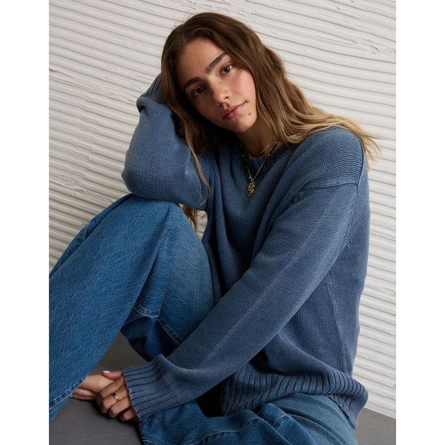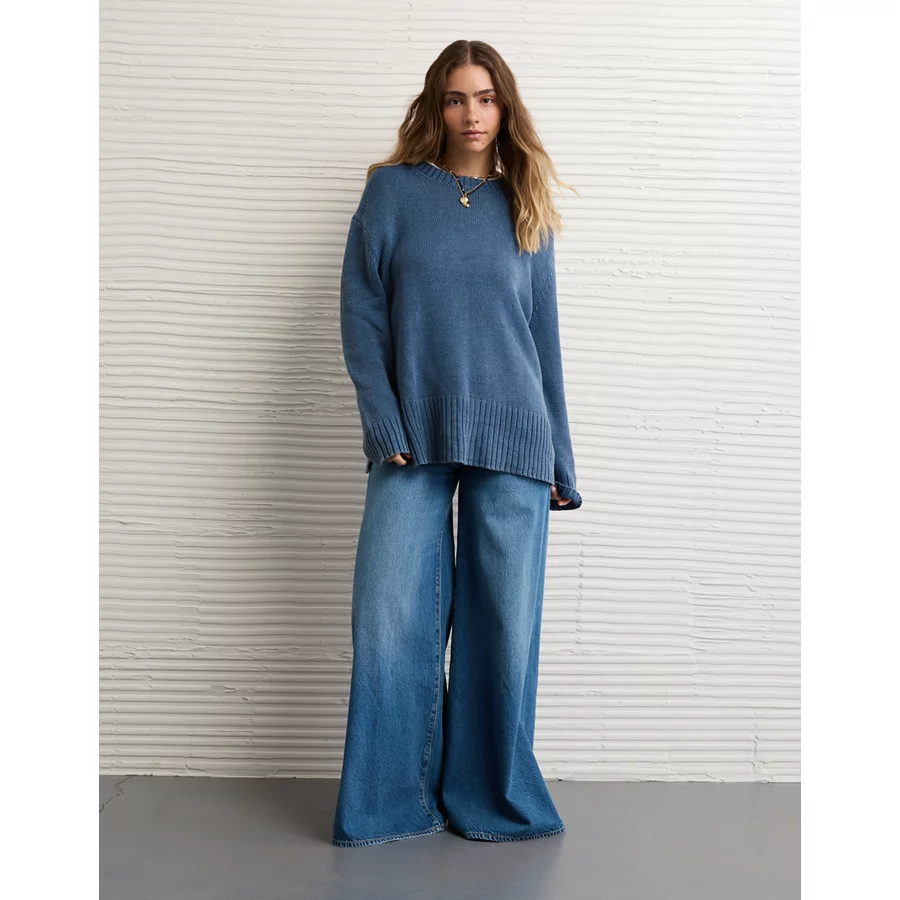 AE 8″ Dreamy Drape Stretch Low-Rise Baggy Jort – Medium Bright Indigo