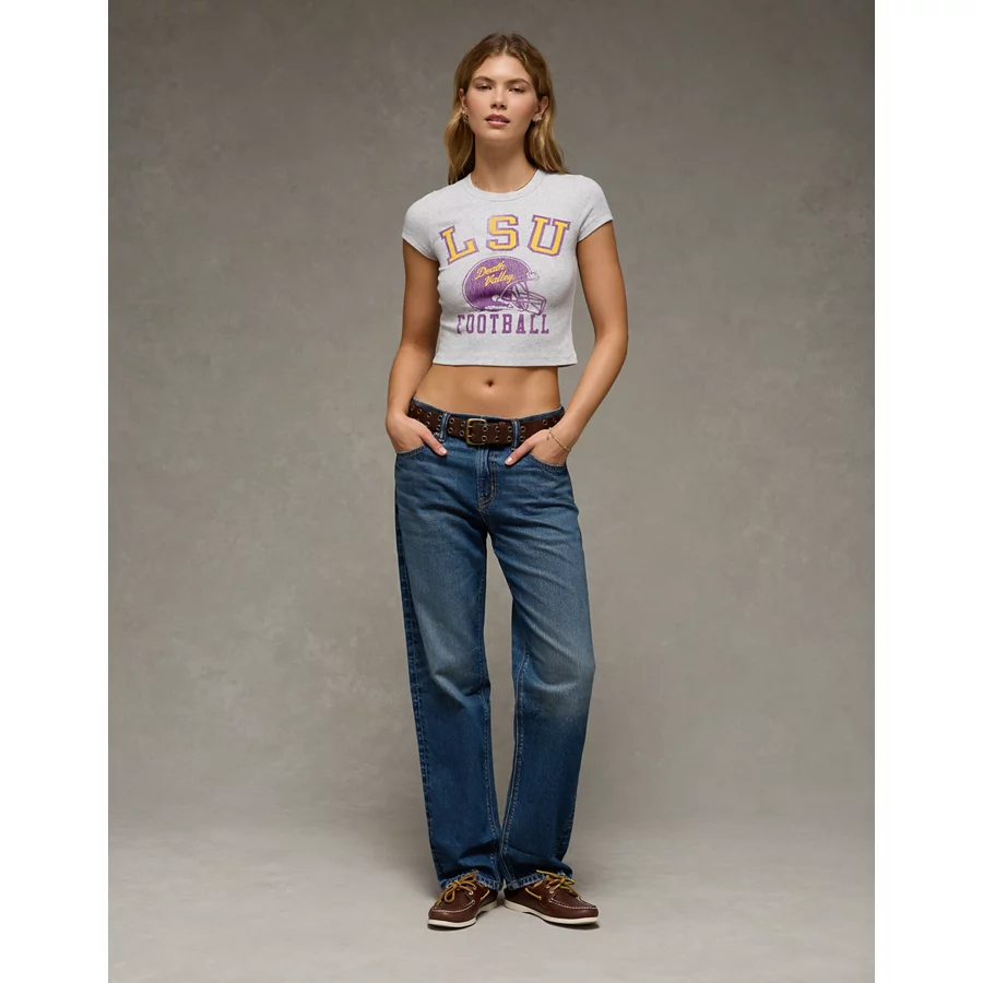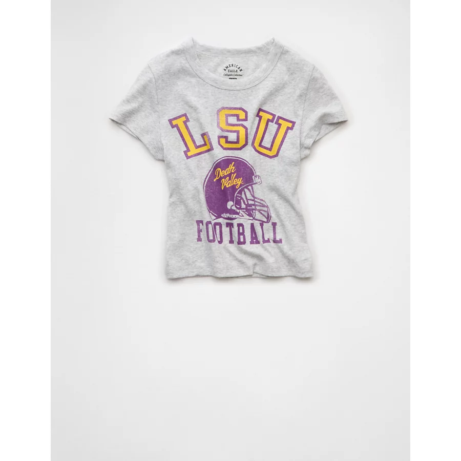 AE LSU Tigers Graphic Cropped Baby Tee – Medium Heather Gray