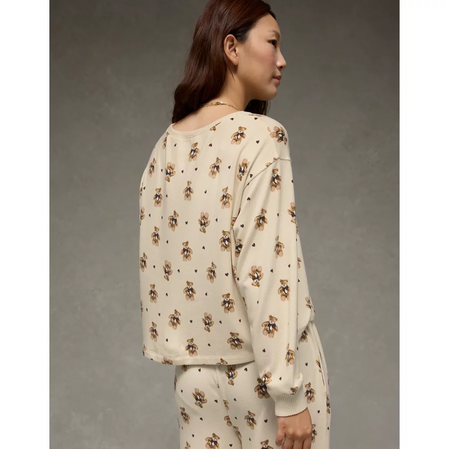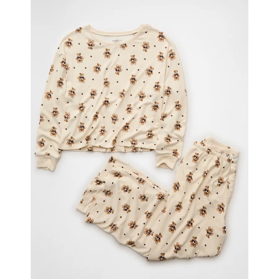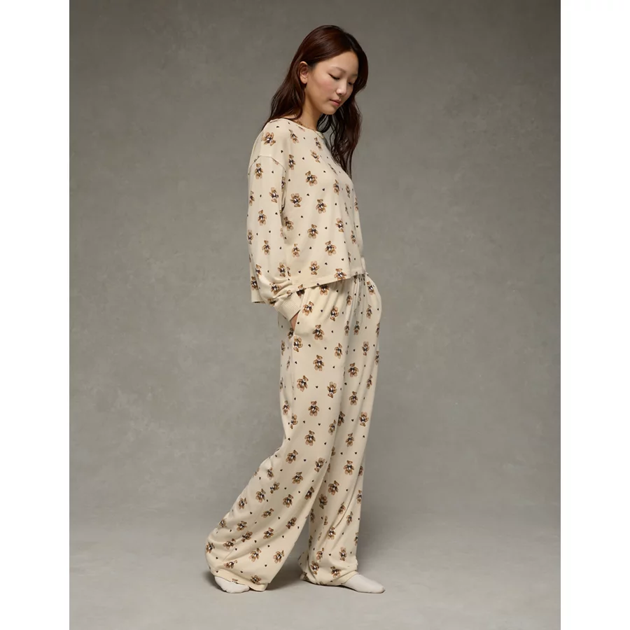 AE Luxe Plush Long-Sleeve & Pant PJ Set – Bone Khaki