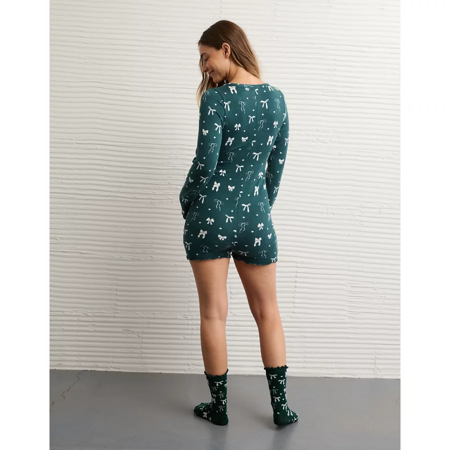 AE Luxe Plush Long Sleeve Romper – Deep Forest