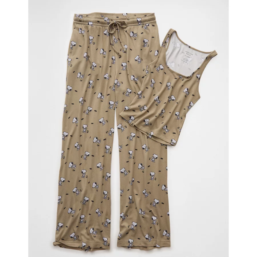 AE Luxe Plush Snoopy Halloween Tank Top & Pant PJ Set – Camo Green