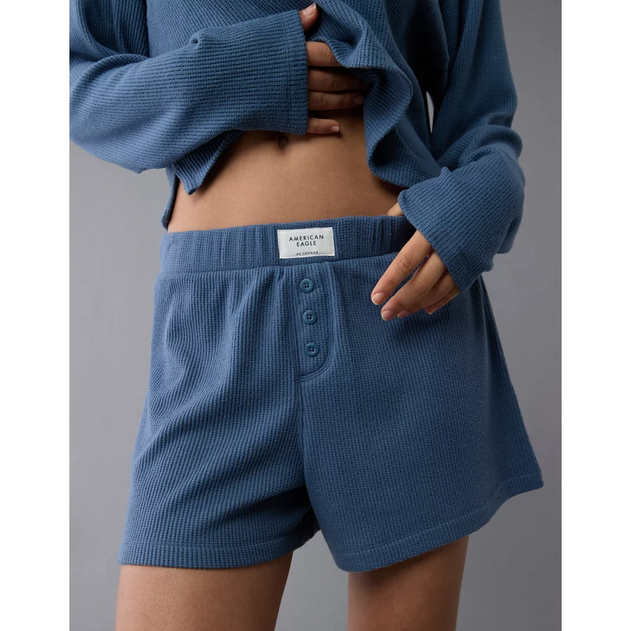 AE Luxe Plush Waffle Tee + Short Lounge Set – Navy