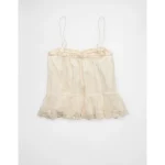 AE Mesh Ruffle Cami – Cream