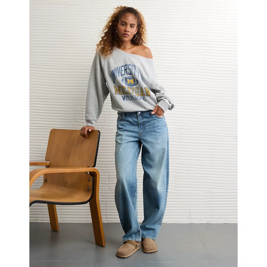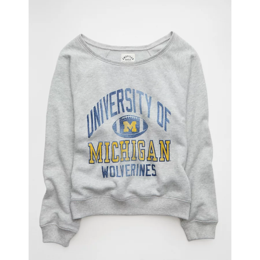 AE Michigan Wolverines Graphic Off The Shoulder Sweatshirt – Gray Heather