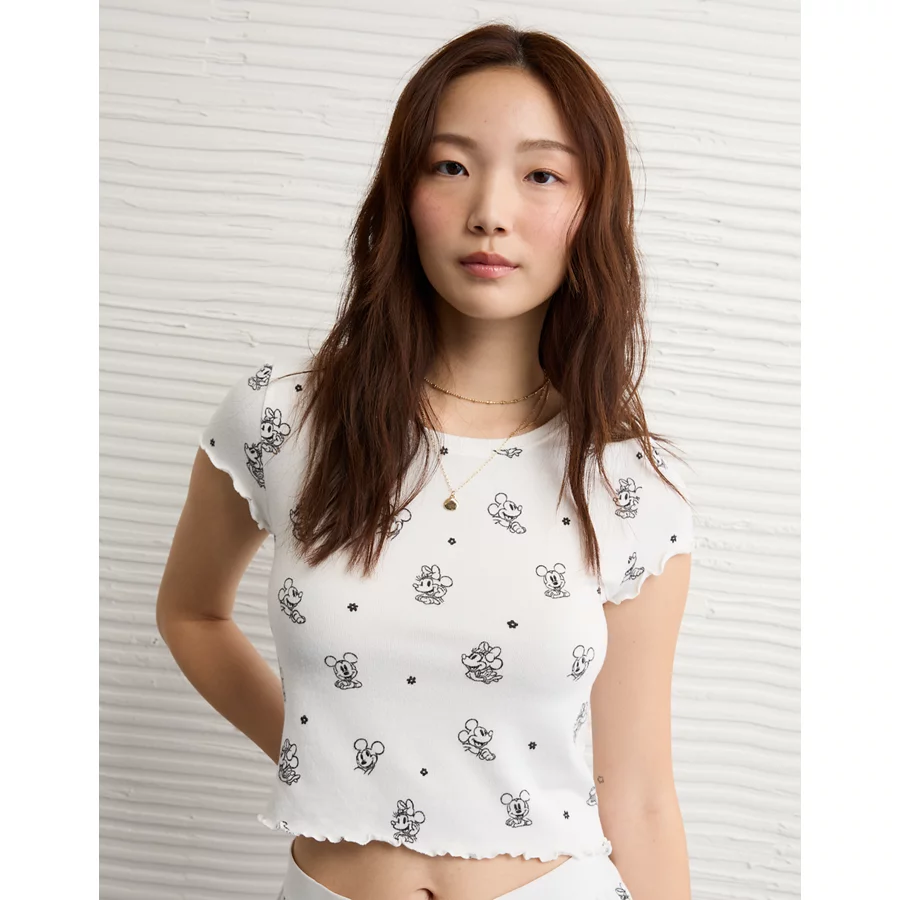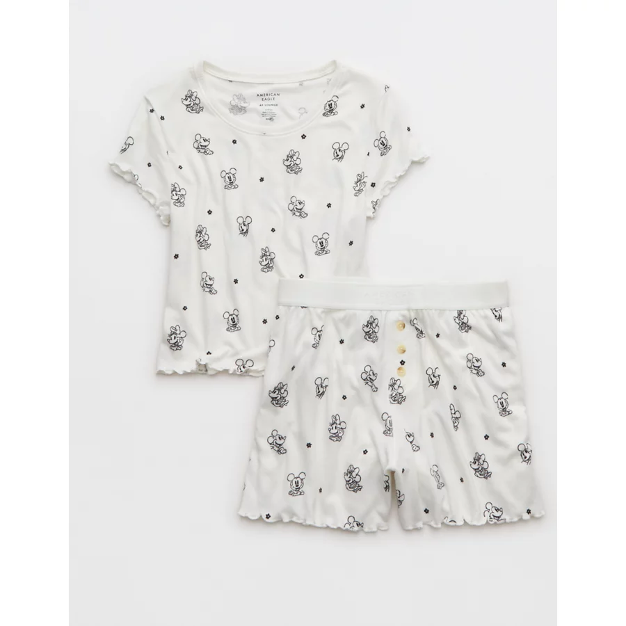 AE Mickey & Minnie Mouse Plush Baby Tee PJ Set – White