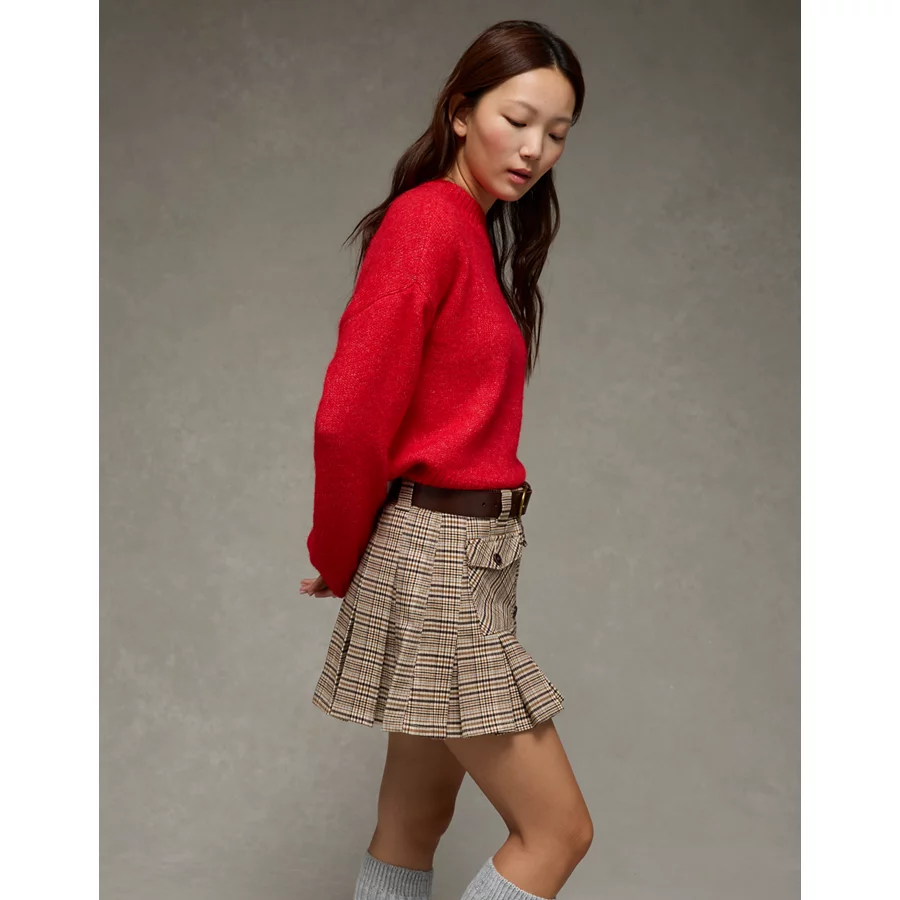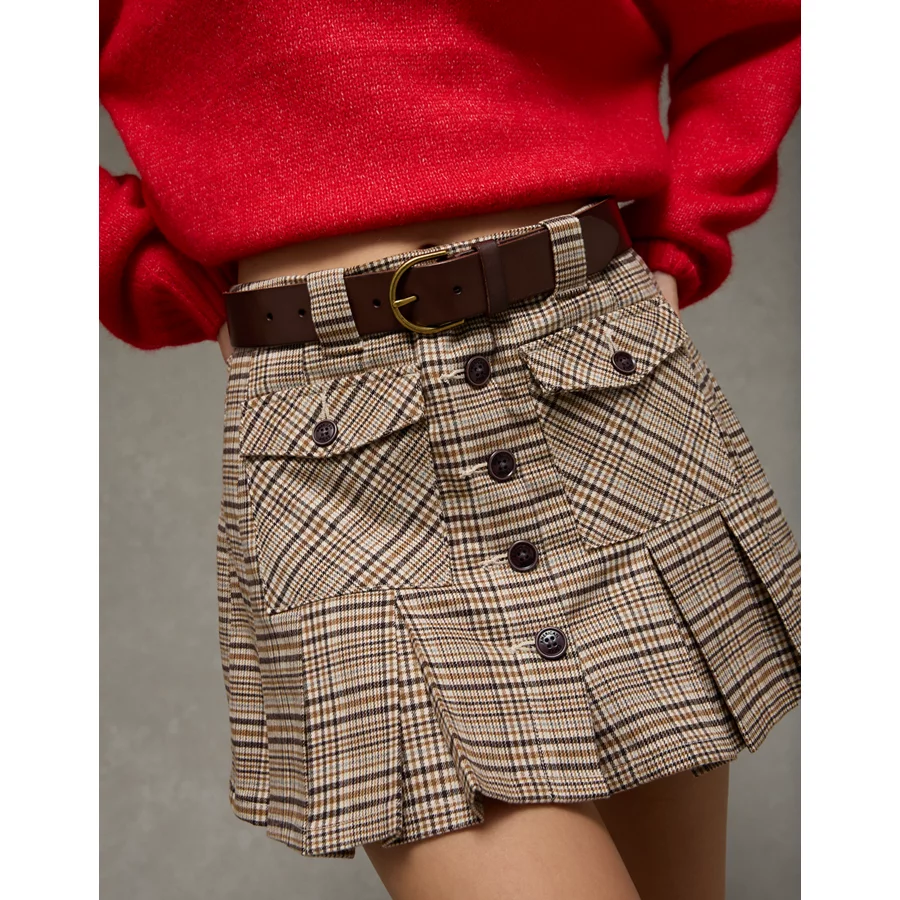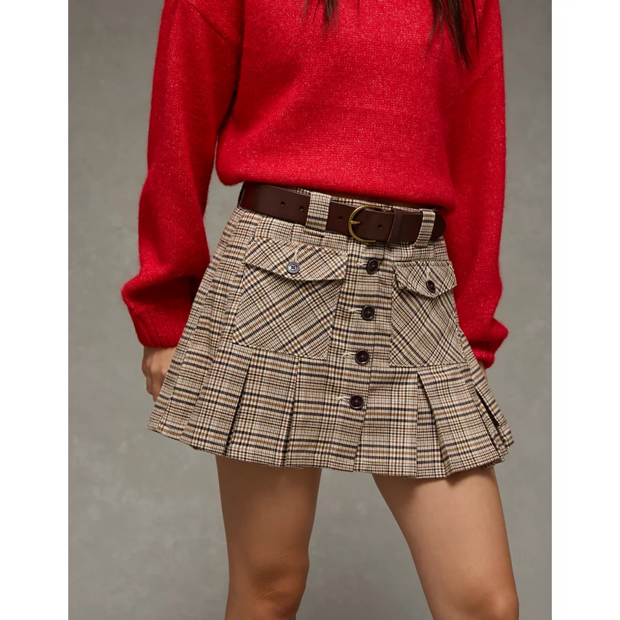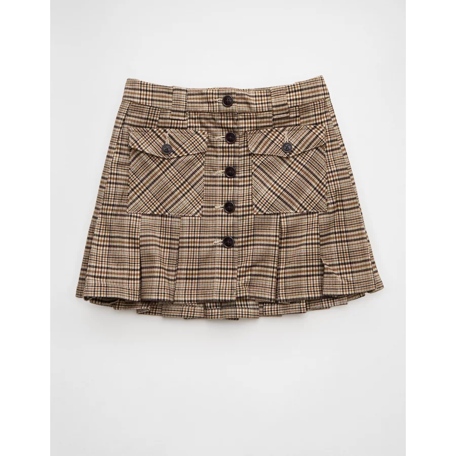 AE Mid-Rise Pleated Skirt – Brown
