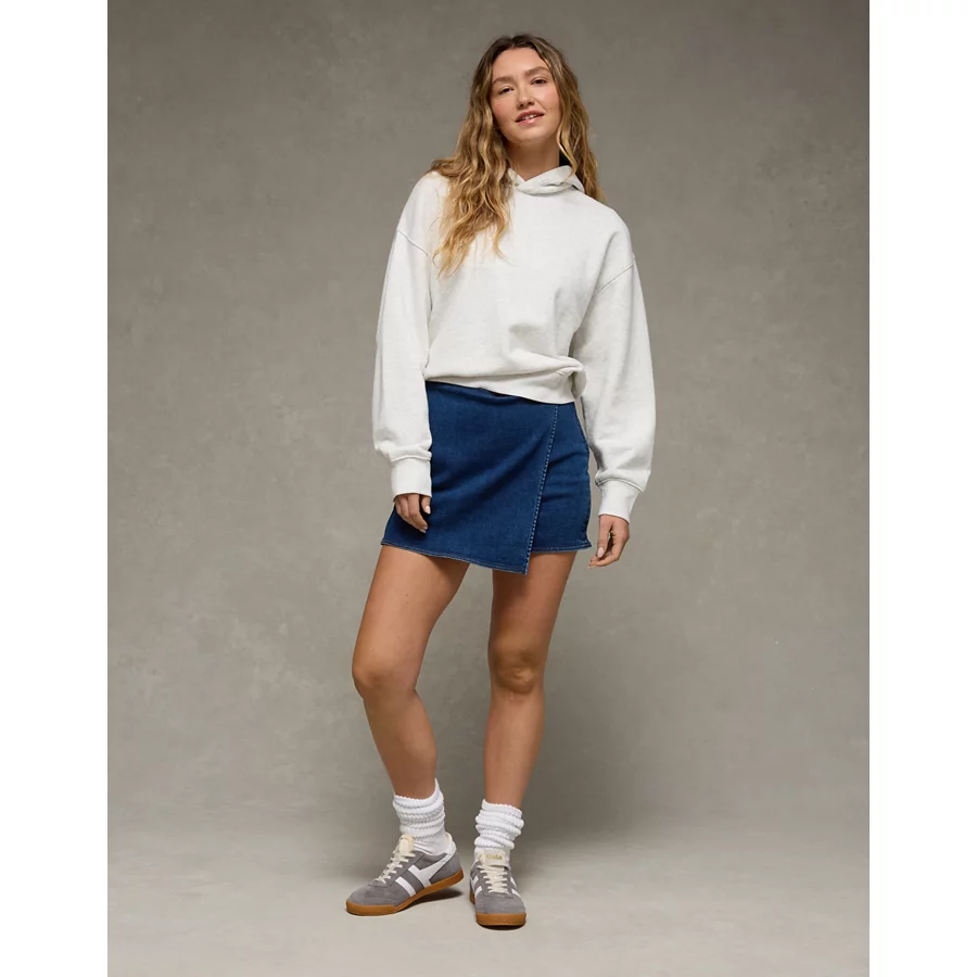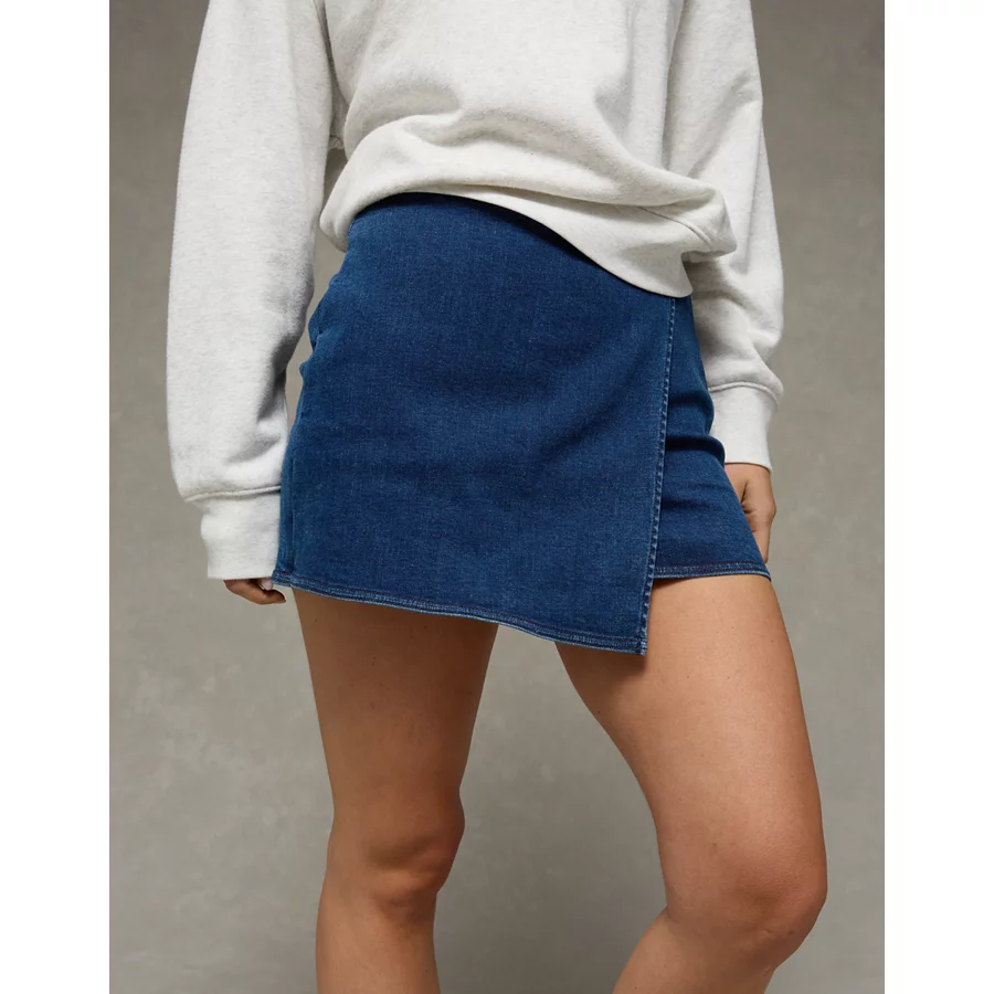 AE Next Level High-Waisted Denim Mini Wrap Skort – Dark Wash