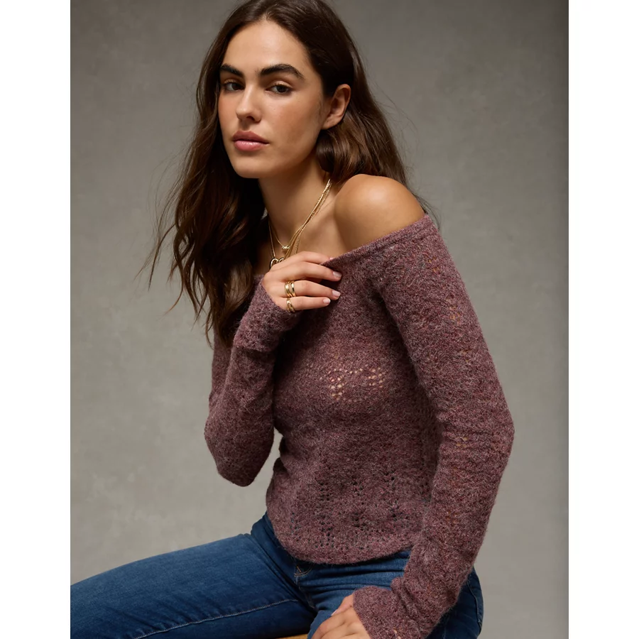 AE Off-The-Shoulder Sweater – Brown