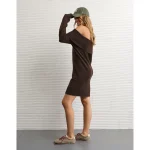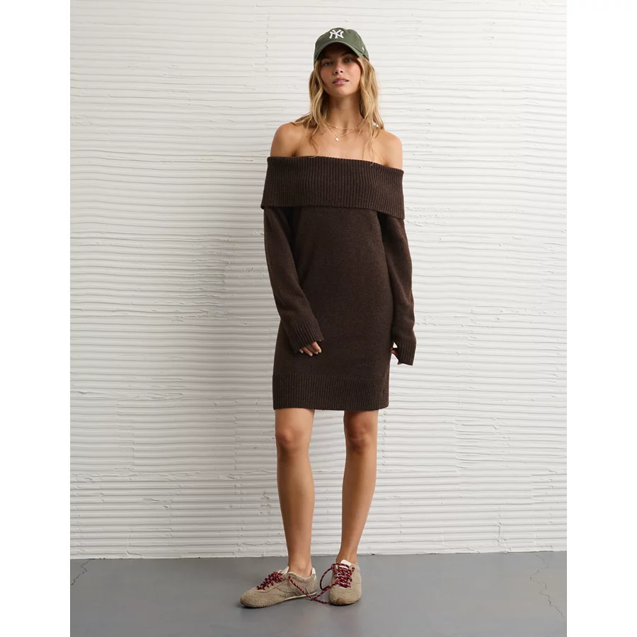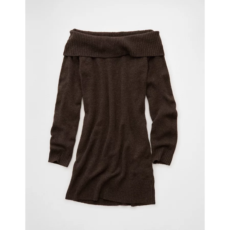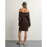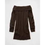 AE Off-the-Shoulder Sweater Mini Dress – Brown