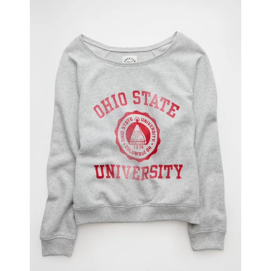 AE Ohio State Buckeyes Graphic Off The Shoulder Sweatshirt – Heather Gray