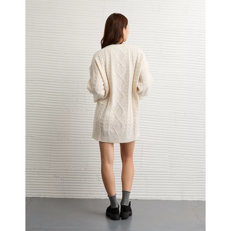 AE Oversized Cable Knit Sweater Dress – Cream