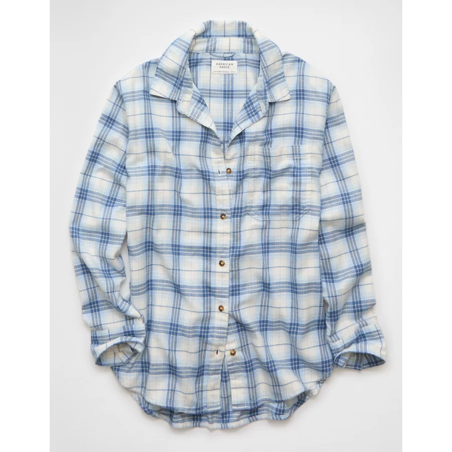 AE Oversized Flannel Shirt – Blue