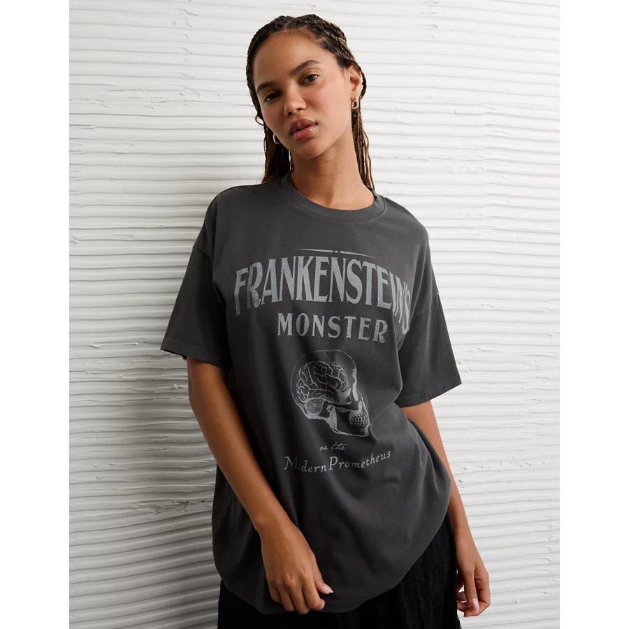 AE Oversized Halloween Graphic T-Shirt - True Black