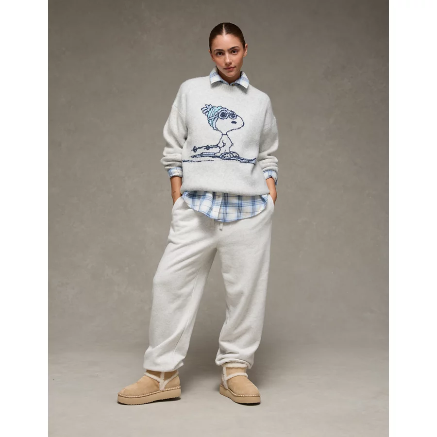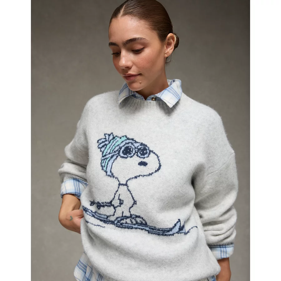 AE Oversized Snoopy Graphic Sweater – Grey