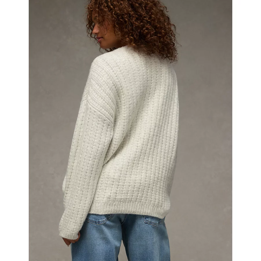 AE Oversized Waffle Sweater – Light Gray